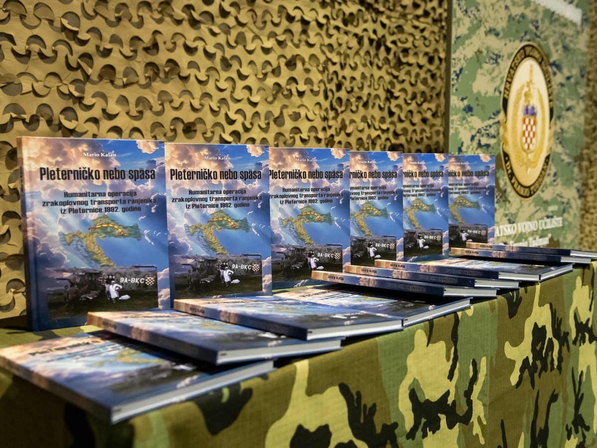 ZAGREB - Na Hrvatskom vojnom učilištu "Dr. Franjo Tuđman" u Zagrebu, dana 26. ožujka 2026. godine, predstavljena je knjiga „Pleterničko nebo spasa – Humanitarna operacija zrakoplovnog transporta ranjenika iz Pleternice 1992. godine ". Autor knjige je umirovljeni bojnik Mario Kalan, a recenzenti knjige su dr. sc. Natko Martinčić, prof. dr. sc. prim. Darko Ropac i Zdeslav Španiček, ravnatelj Državnog arhiva u Požegi.